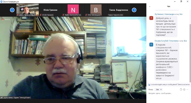 На питання наших гостей також відповідали директорка Навчально-наукового інституту харчових технологій Оксана Кочубей-Литвиненко, її заступниця Анастасія Пухляк, директор Навчально-наукового інституту економіки і управління Олег Шеремет, фахівці Центру моніторингу якості і координації освітньої діяльності університету.