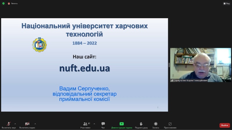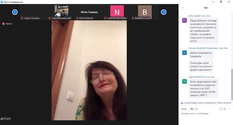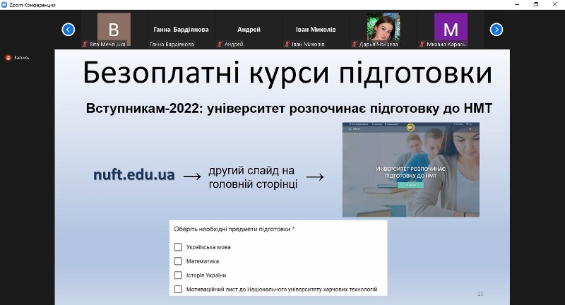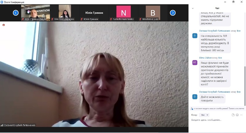 Перша відеоконференція розпочалася з традиційного відео, що дало змогу ознайомитися з історією університету, нашими навчально-науковими інститутами та факультетами, спеціальностями, за якими здійснюється підготовка, матеріально-технічним забезпеченням навчального процесу, можливостями для студентів і дозвіллям.