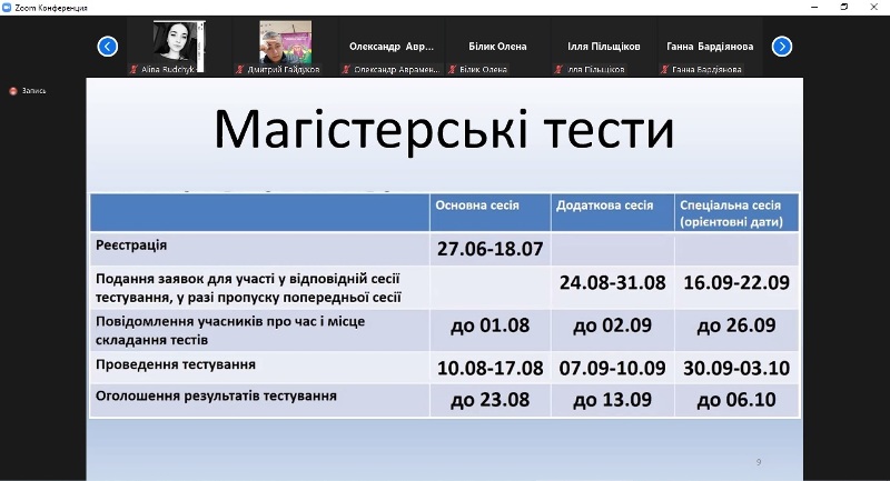 Майбутні вступники на здобуття освітнього ступеня «магістр» також отримали повну інформацію щодо вступу до магістратури – умови, документи, дати, для вступу на які спеціальності потрібно буде здавати фахове вступне випробування, а на які магістерський тест навчальної компетентності (МТНК).
