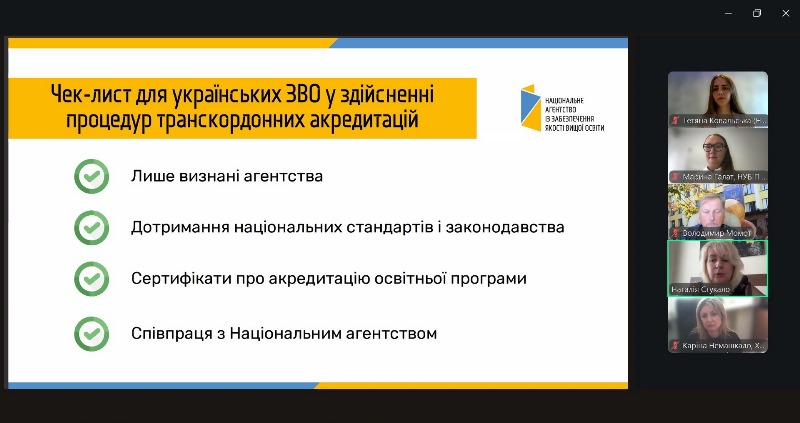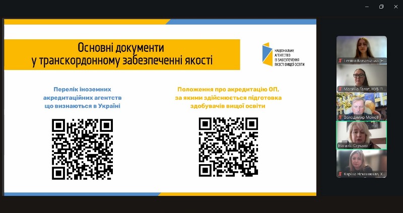 У межах заходу представники Харківського національного економічного університету імені Семена Кузнеця, Університету імені Альфреда Нобеля, Національного університету біоресурсів і природокористування України поділилися кращими практиками транскордонного забезпечення якості, зокрема досвідом проходження акредитації освітніх програм у міжнародних агентствах і надали практичні поради щодо реалізації принципів транскордонного забезпечення якості вищої освіти в Україні.