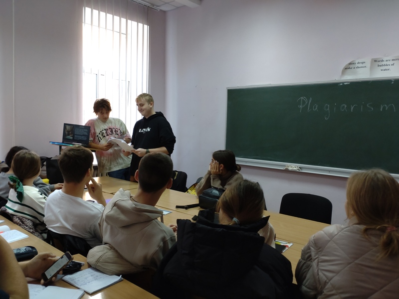 Ініціатором англомовних заходів Тижня академічної доброчесності стала кафедра іноземних мов професійного спрямування. Зокрема, лекторка дисципліни «Іноземна мова: практичні навички наукової комунікації» Наталія Науменко зазначеній проблемі присвятила цілу лекцію, а викладачки Галина Лук’янець, Інна Форостюк, Ольга Нежива у межах навчальних дисциплін «Іноземна мова для академічного та професійного спілкування», «Іноземна мова за професійним спрямуванням» організовували практичні заняття у формі наукових дискусій – із доповідями, презентаціями та їх обговоренням.