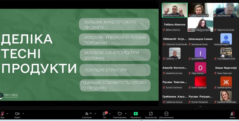 Слухачі ознайомилися зі сучасними інноваціями в харчовій промисловості та, зокрема, з різноманіттям харчових волокон від Pro-Fiber, їх фізико-хімічними показниками та практичним застосуванням клітковин у м'ясній промисловості.