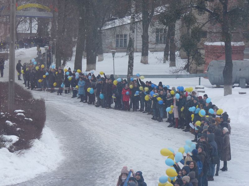 Свою любов до Батьківщини, особливе бачення української державності, минулого та майбутнього нашої країни студенти та викладачі 1-4 курсів передали патріотичним флешмобом «Україна – єдина країна», утворивши живий ланцюг єдності на території  коледжу, між першим і другим корпусами, проголошуючи гасла «Слава Україні! Героям Слава!».