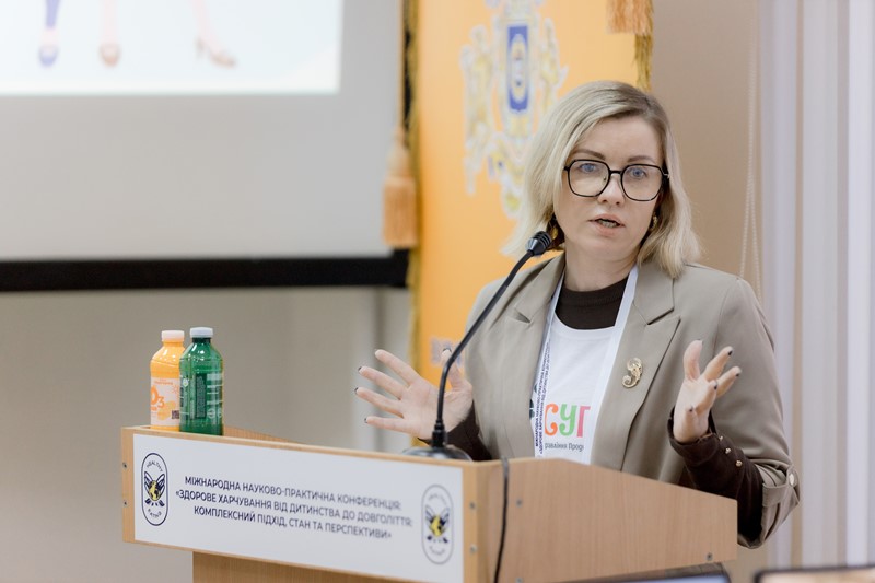 Практичні висновки і перспективи впровадження державної програми «Харчування дітей в закладах освіти як основа формування здорових харчових звичок» були наведені у спільній доповіді керівника команди реформи шкільного харчування, голови правління ГО «Національна асоціація громадського харчування» Ореста Степаняка та д.т.н., доцентки кафедри технології хлібопекарських і кондитерських виробів нашого університету, менеджерки з міжнародної співпраці та експертки з норм і принципів харчування команди реформи шкільного харчування Анастасії Шевченко.