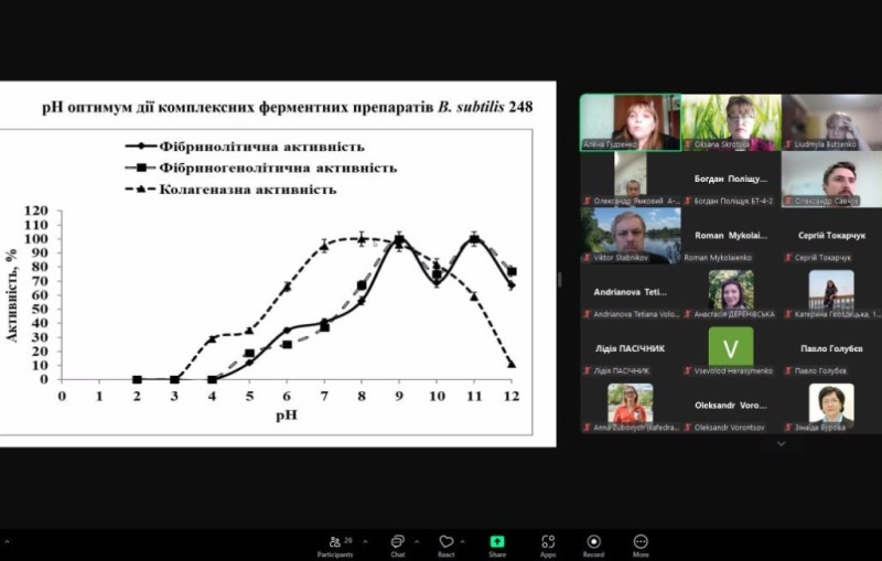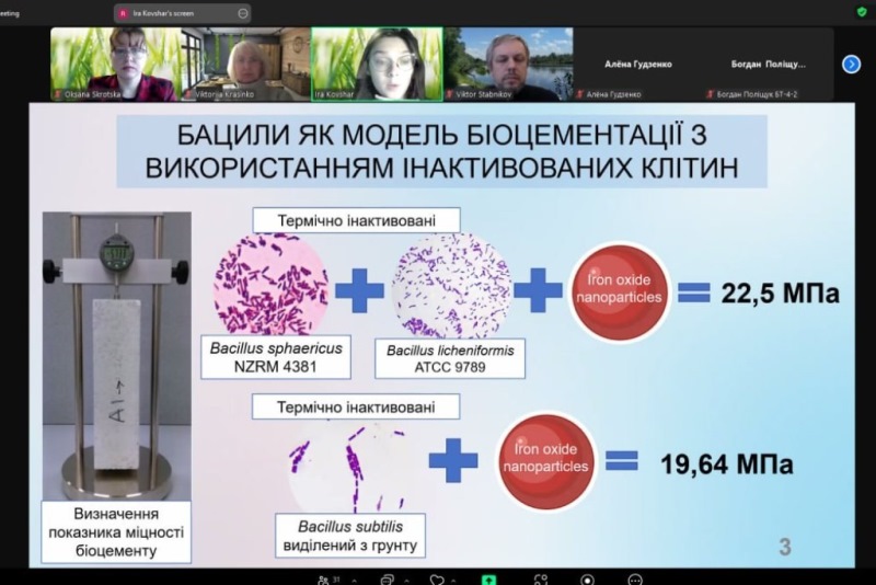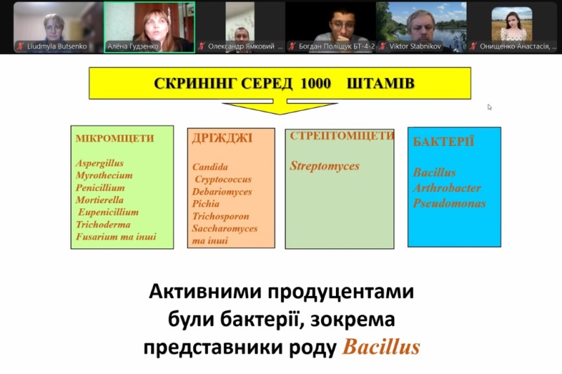 Крім того, на секційному засіданні були представлені доповіді здобувачів кафедри біотехнології і мікробіології: «Порівняльна характеристика біоцементів, одержаних з використанням живих та інактивованих клітин уреазопродукуючих бактерій» аспірантки Ірини Ковшар (науковий керівник – професор Віктор Стабніков); «Перспективи використання базидієвих грибів у біотехнологіях для створення білоквмісних продуктів із лікувально-профілактичними властивостями» аспіранта Всеволода Герасименка (наукова керівниця – доцентка Вікторія Красінько); «Біотехнологічний потенціал дріжджів Kluyveromyces marxianus» магістрантки Анастасії Онищенко (наукова керівниця – доцентка Оксана Скроцька); «Актуальність і перспективи виробництва розчинників методом мікробіологічного синтезу» бакалавра Богдана Поліщука (науковий керівник – старший викладач Віктор Удимович).