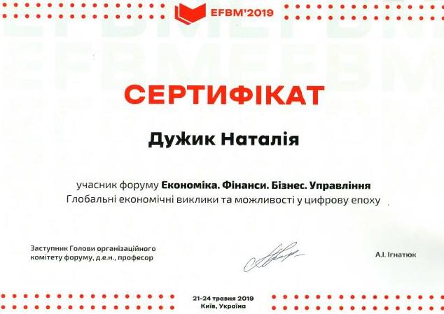 Старший викладач кафедри ділової іноземної мови та міжнародної комунікації Наталія Дужик взяла участь у Міжнародному економічному форумі «Економіка. Фінанси. Бізнес. Управління. Глобальні економічні виклики та можливості у цифрову епоху», що працював у Київському національному університеті імені Тараса Шевченка.