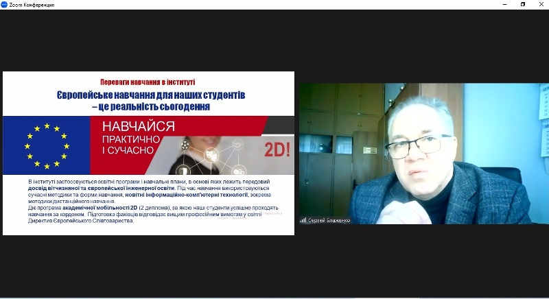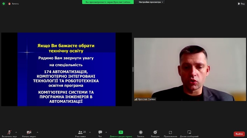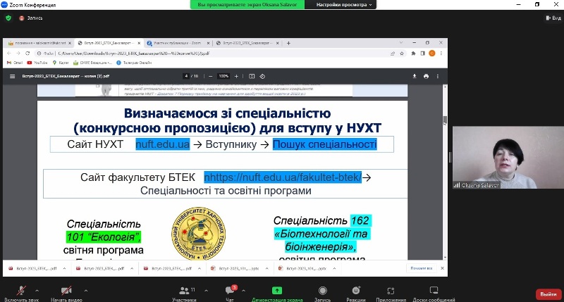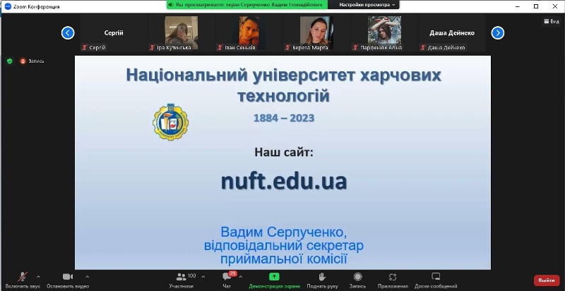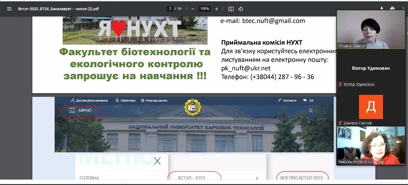 І у офлайн, і у онлайн-форматі наші гості змогли детально познайомитися з НУХТ, переглянувши фільм про університет. Далі значна частина програми відводилася на виступ відповідального секретаря Приймальної комісії університету Вадима Серпученка. Спочатку у актовій залі університету, а потім для онлайн-учасників за допомогою zoom-конференції фахівець дуже ґрунтовно й доступно роз’яснив усі нюанси вступу до закладів вищої освіти у 2023 році для всіх категорій вступників. Розпочав, як завжди, з термінології, аби школярам і старшокурсникам фахових коледжів було легше розібратися у документах, що регламентують вступну кампанію в Україні, а далі свої лайфхаки для успішного вступу отримали учні шкіл, ліцеїв, гімназій, що вступатимуть на освітній ступінь «Бакалавр» на основі повної загальної середньої освіти; випускники коледжів, що вступатимуть на скорочений термін навчання на основі освітнього ступеня «Молодший бакалавр» або освітньо-кваліфікаційного рівня «Молодший спеціаліст» і вступники на освітній ступінь «Магістр», що вступатимуть на основі здобутого освітнього ступеня «Бакалавр».
