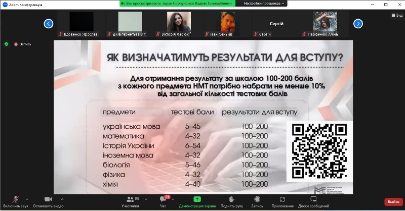 Дізнавшись про складання НМТ, дати вступної кампанії, необхідні документи, реєстрацію електронного кабінету, написання мотиваційного листа тощо, учасники заходу змогли задати всі питання, що їх турбують, і отримали на них вичерпні відповіді.