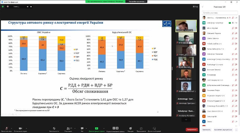 18 травня 2022 р. на кафедрі електропостачання і енергоменеджменту відбулася гостьова лекція «Енергоринок України», на якій науковий співробітник Інституту Електродинаміки НАН України, кандидат технічних наук Володимир Мірошник, який є випускником кафедри, розповів про енергоринок України, його сучасний стан і перспективи розвитку.
