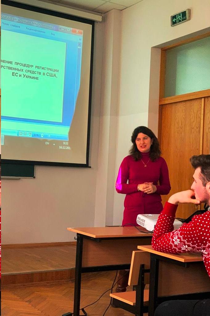 Перший день сесії студентам 3-го курсу та магістрантам 1-го року навчання кафедри біотехнології і мікробіології запам’ятався не тільки навчальним процесом, але й лекцією медичного директора ТОВ «Біофарма Плазма» Марини Валової. Лектор відкрила завісу такого цікавого та водночас складного світу реєстрації лікарських засобів на території України, регулювання національного фармацевтичного сектору з врахуванням євроінтеграційних процесів. Завдяки Марині Валовій студенти більш поглиблено дізнались про реєстрацію лікарських засобів у ЄС, нормативну базу, яка супроводжує кожний етап впровадження препаратів на фармацевтичний ринок. Дуже цікавим для студентів виявилось питання експорту лікарських препаратів на світову арену.