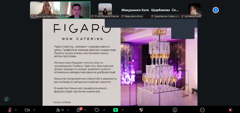 Тема зустрічі – «Сучасні тренди в організації кейтерингового обслуговування». Богдан поділився практичним досвідом організації та проведення івентів різних масштабів в умовах сучасних викликів. Учасники активно долучилися до дискусії, обговорюючи особливості підготовки до заходів на прикладі роботи Figaro-Catering.