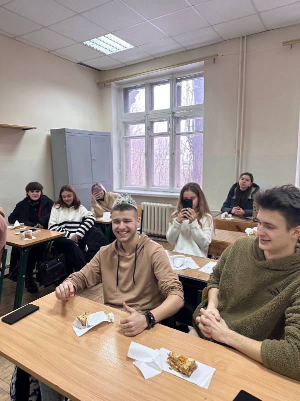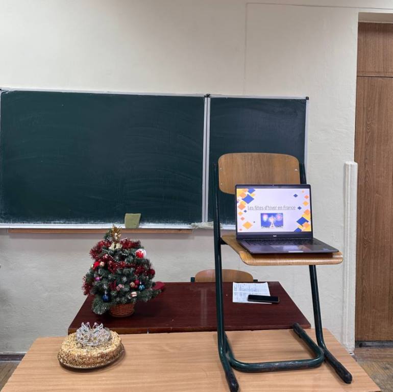 6 січня – свято королів (fête des rois), присвячене приходу волхвів із дарами до новонародженого Ісуса Христа. Цього дня готують або купують мигдальний пиріг «Galette de Roi», який прикрашають золотою паперовою короною, а в середину запікають «fève» (біб), маленьку фігурку з пластмаси або скла. За традицією, пиріг ріжуть на кількість присутніх за столом, а наймолодший в сім’ї розподіляє ці шматки. Той, кому дістанеться «fève», призначається королем або королевою. Ось цю традицію доцентка Світлана Мусійчук і розіграла зі студентами. Цього разу королем став Олександр Головко, з чим його радісно привітали всі присутні. Усім було цікаво і весело!