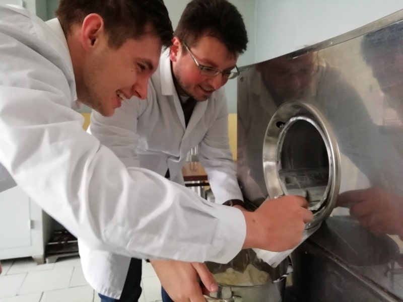 17 квітня студенти групи ХЧ 4-1 денної форми навчання напряму підготовки 181 «Харчові технології» отримали змогу приготувати морозиво під керівництвом викладача Ірини Корецької. Виробництво продукту відбувалося у рамках лабораторного заняття з дисципліни «Технології міні-виробництва харчових продуктів у закладах ресторанного господарства».