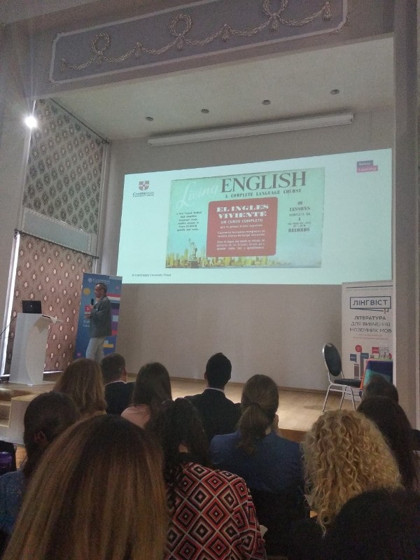 Метью Ельман, регіональний тренер «Cambridge University Press», у своїй доповіді звернув особливу увагу на вплив технологій на навчальне середовище та дав цінні поради щодо того, як викладачам реагувати на ці зміни не тільки сьогодні, але й у майбутньому.