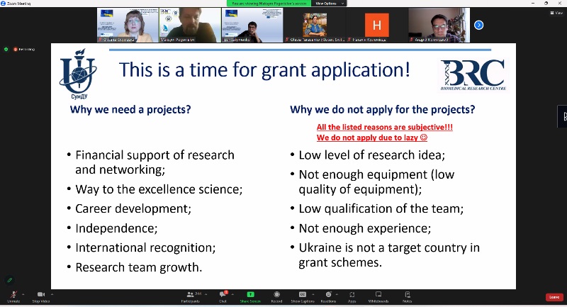 Далі виступав керівник Центру біомедичних досліджень Медичного інституту Сумського державного університету, науковий співробітник Інституту атомної фізики та спектроскопії Латвійського університету (Рига, Латвія) Максим Погорєлов, який, до слова, є координатором проєктів HORIZON-MSCA-SE-2021 ARGO та MX-MAP. Він розповів про особливості участі у різних міжнародних проєктах, зокрема у програмі «Горизонт Європа».