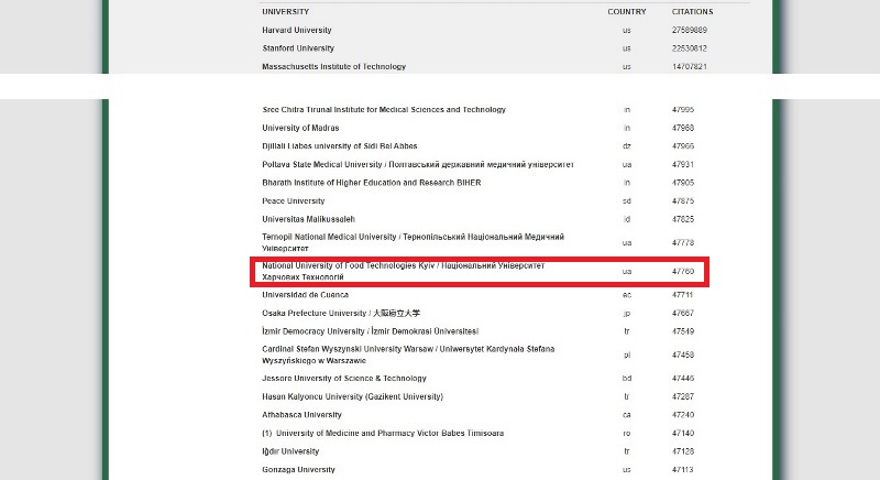 Рейтинг охоплює понад 5600 університетів світу, показник цитованості яких більше ніж більше 1000. До рейтингу увійшли 94 українські виші, кількість цитувань яких від 1027 до 235967.