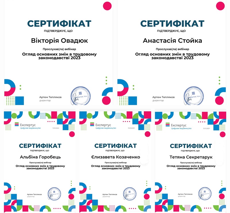 11 січня 2024 року здобувачки 3 курсу освітньо-професійної програми «Менеджмент персоналу» Вікторія Овадюк, Тетяна Секретарук, Альбіна Горобець, Єлизавета Козаченко та Анастасія Стойка взяли участь у онлайн-вебінарі «Огляд основних змін в трудовому законодавстві 2023».