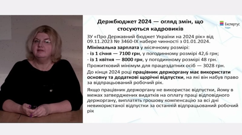 Програма вебінару була насиченою і включала питання: новий порядок інформування центру зайнятості про потребу в працівниках з інвалідністю; дозвіл Кабінету міністрів України не проводити атестацію робочих місць за умовами праці в період воєнного стану; зміни щодо оформлення лікарняного по вагітності та пологах; зміни в порядку розрахунку компенсації за невикористані щорічні відпустки; нова форма штатного розпису від Міністерства фінансів; чи оплачує роботодавець медогляди з 1 жовтня 2023 року; Держбюджет 2024 ‒ огляд змін, що стосуються кадровиків; основні зміни щодо відпусток працівників та інші.