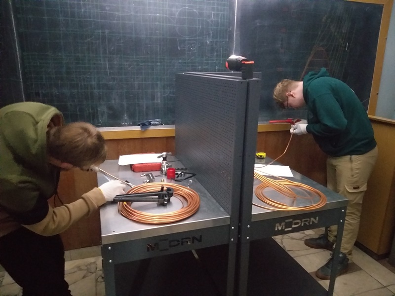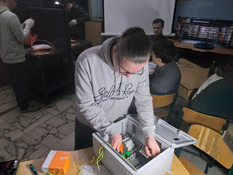 Конкурс розпочався за графіком, попри відключення світла, що не зіпсувало настрою конкурсантам. Вони виконували завдання із оброблення мідних трубопроводів і монтажу електросхем із непідробним завзяттям і цікавістю.