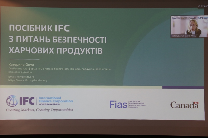 На зустрічі з Катериною Онул, представницею Глобальної платформи IFC з питань безпечності харчових продуктів і запобігання харчових відходів, був презентований Посібник IFC з питань безпечності харчових продуктів, представлений на сайті Держпродспоживслужби, що містить корисні поради для операторів ринку щодо впровадження систем управління безпечністю харчових продуктів.