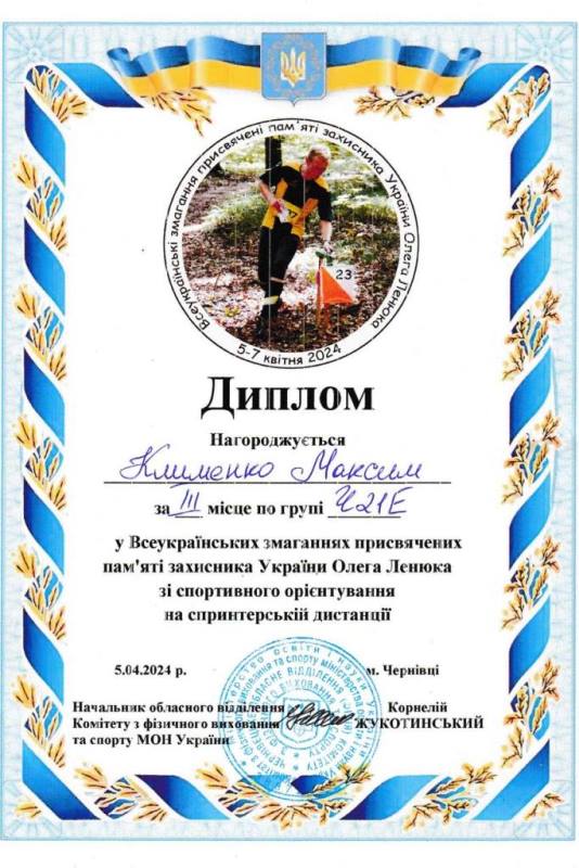 5-7 квітня 2024 року в місті Чернівці відбувся Кубок України (етапи) та Всеукраїнські змагання, присвячені пам'яті захисника України Олега Ленюка зі спортивного орієнтування. У змаганнях взяли участь 152 спортсмени з 13 областей України та м. Києва.