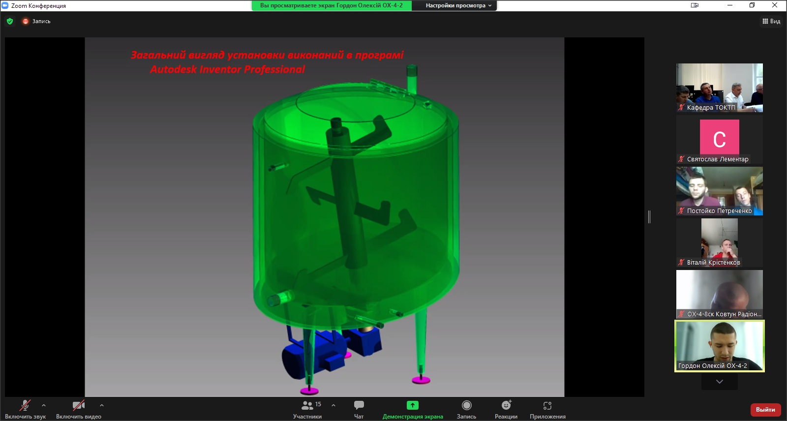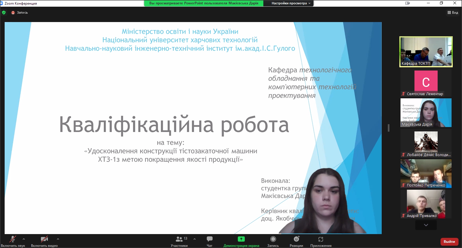 15 червня 2022 року на кафедрі технологічного обладнання та комп’ютерних технологій проектування стартували онлайн-захисти кваліфікаційних робіт на здобуття освітнього ступеня «бакалавр» зі спеціальності 133 «Галузеве машинобудування».