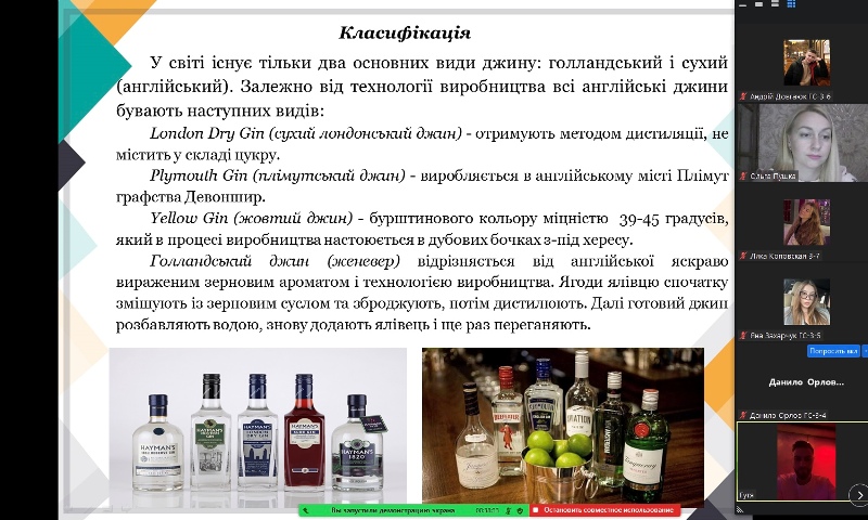 У рамках вивчення навчальної дисципліни «Барна справа та організація роботи сомельє» лекторка, доцентка Ольга Пушка організувала бінарну лекцію для здобувачів освіти спеціальності 241 «Готельно-ресторанна справа».