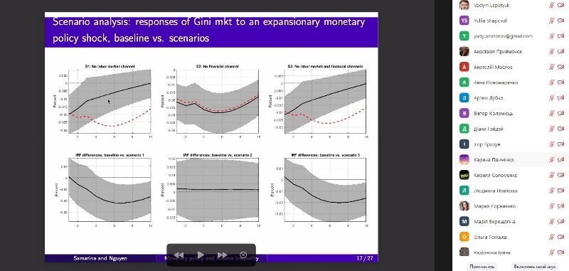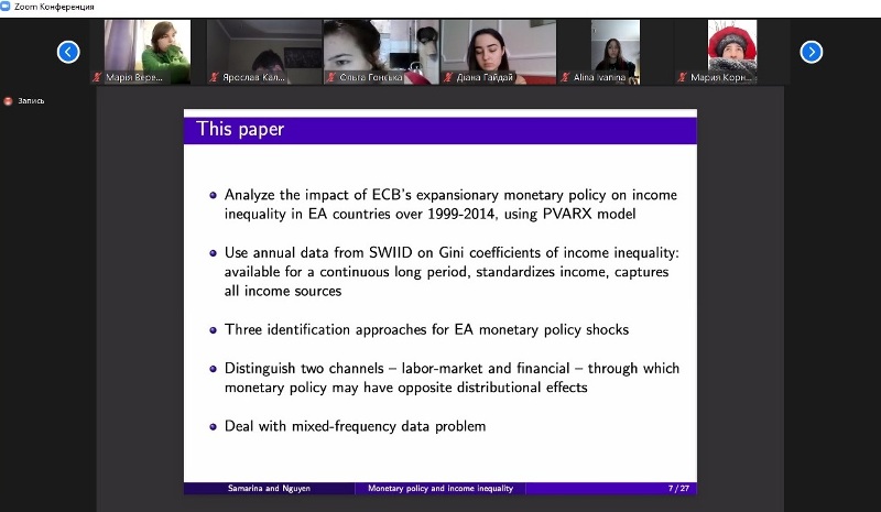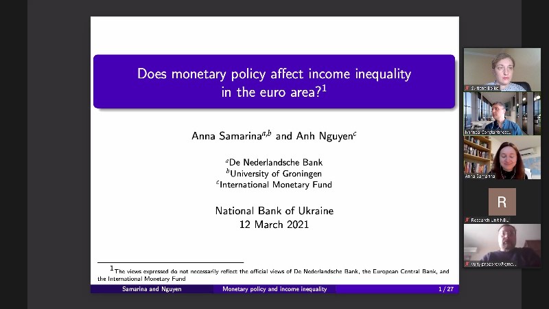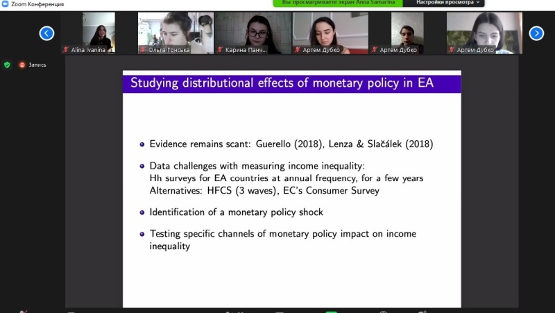 12 березня 2021 року здобувачі другого та третього курсів спеціальності «Фінанси, банківська справа та страхування» за ініціативи доцентки Світлани Бойко відвідали відкритий науковий семінар співробітниці Дослідницького центру Банку Нідерландів Анни Самаріної, яка працювала у центральних банках Норвегії та Литви, Гронінгенському університеті та Швейцарському економічному інституті KOF.