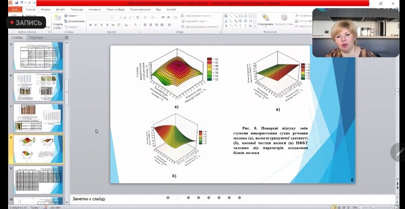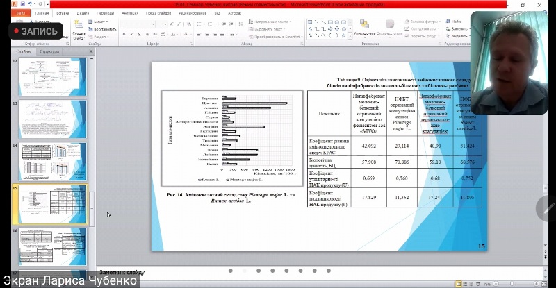 16 червня 2021 року на засіданні разової спеціалізованої вченої ради ДФ 26.058.008 аспірантка кафедри технології молока і молочних продуктів Лариса Чубенко презентувала свої дослідження за темою «Удосконалення технології напівфабрикатів з осадженням молочних білків активним комплексом рослин-дикоросів». Наукова керівниця – кандидатка технічних наук, професорка кафедри Олена Грек.