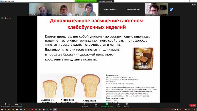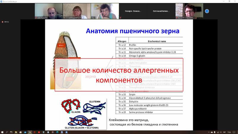 Ольга Наумова згідно з анатомією пшеничного зерна навела перелік алергенних компонентів, зокрема, фруктану, який може негативно вплинути на здоров’я людини. Перерахувала позитивні та негативні сторони додаткового насичення глютеном хлібобулочних виробів.