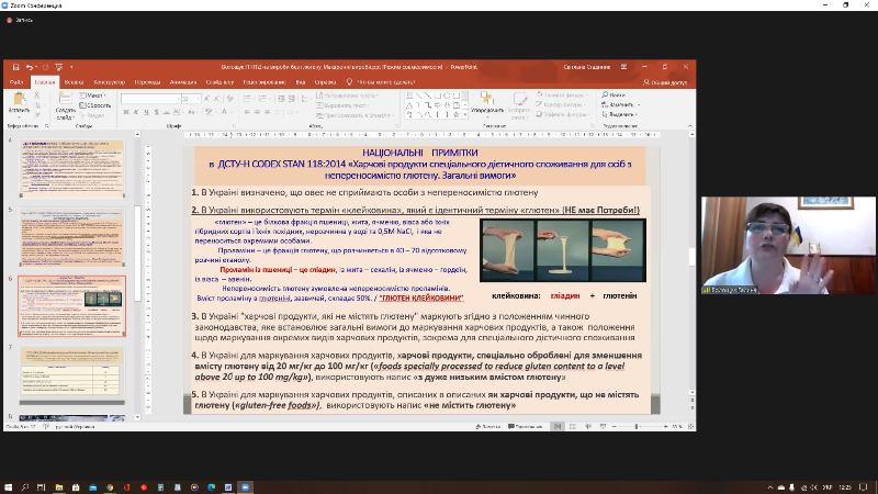 На початку доповіді фахівчиня представила динаміку виробництва хліба та хлібобулочних виробів і сучасні стандарти на харчові продукти для осіб із непереносимістю глютену.