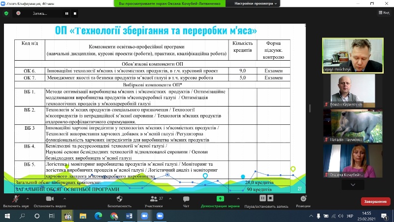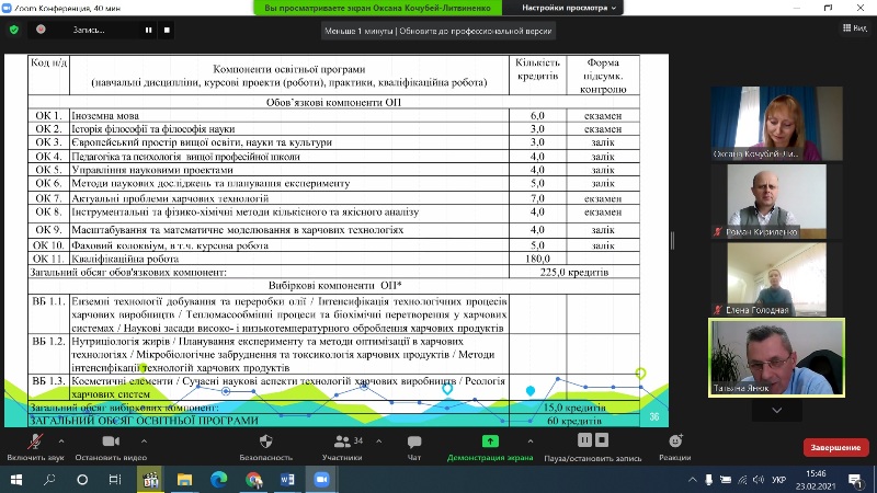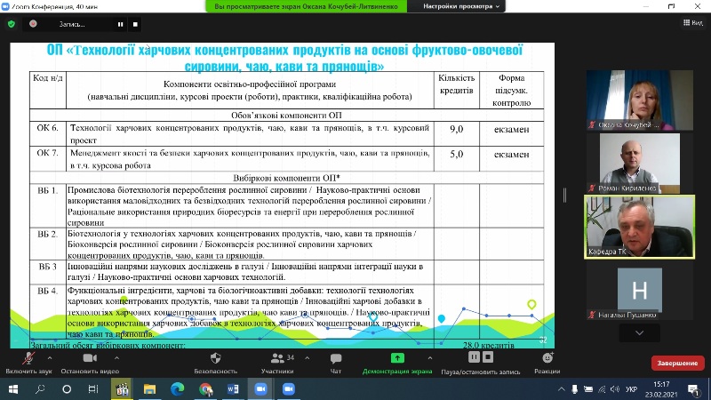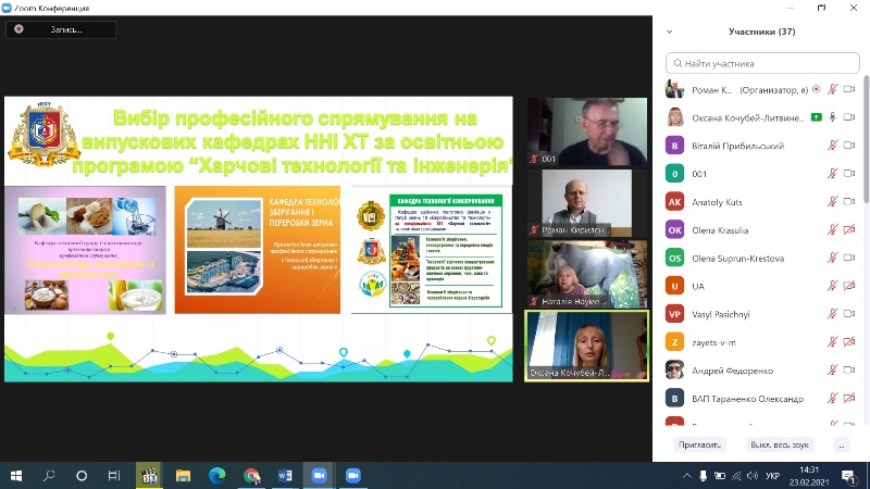 23 лютого 2021 року в рамках перегляду освітніх програм усіх рівнів спеціальності 181 «Харчові технології» в Навчально-науковому інституті харчових технологій НУХТ (ННІХТ) відбувся «круглий стіл» за участю гарантів і представників робочих груп освітніх програм із представниками промисловості, наукових установ та асоціацій.