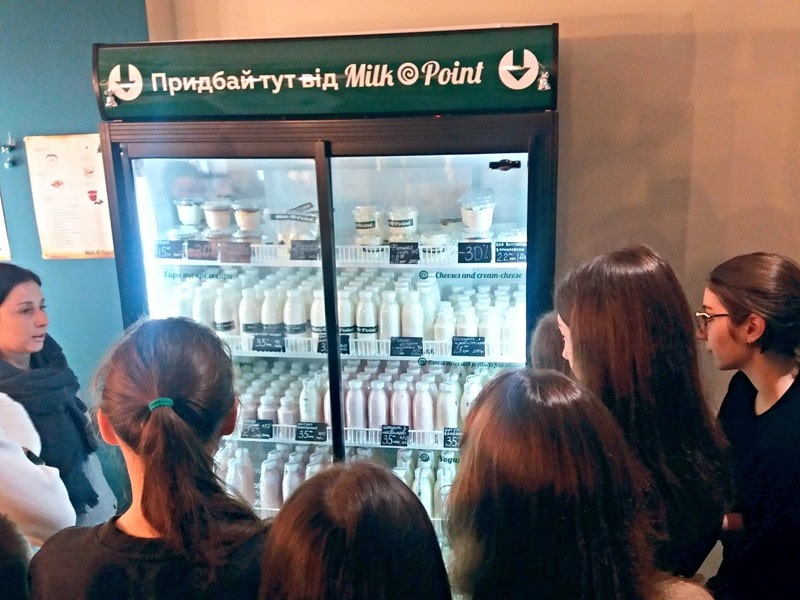 Із кращими вітчизняними підприємствами харчової галузі знайомлять своїх студентів колективи випускових кафедр. Ось і 31 січня 2019 р. згідно з програмою проведення ознайомлювально-виробничої практики асистенти кафедри технології молока і молочних продуктів Ігор Устименко та Оксана Басс організували екскурсію для академічної групи 3 у кафе-виробництво молочних продуктів «Milk Point» (м. Київ).