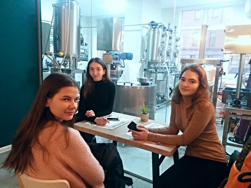 Найбільше враження на другокурсників справив принцип роботи міні-цеху кафе, який оснащений сучасним обладнанням: стерилізаційною та пастеризаційною установками, сировиготовлювачем, гомогенізатором, фасувальним апаратом та ін.