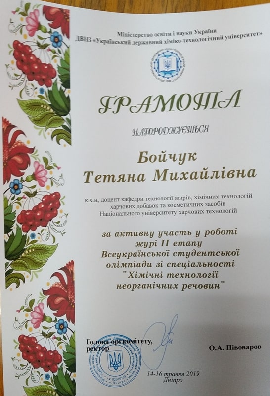 Наш університет представляла команда у складі студентів спеціальності 161 «Хімічні технології та інженерія» Марини Арлачової, Юлії Коробки, Вікторії Сліпньової та Анастасії Терещенко. Підготовкою учасників до олімпіади займалися доценти кафедри технології жирів, хімічних технологій харчових добавок та косметичних засобів Олена  Подобій і Тетяна  Бойчук, які, крім того, взяли активну участь у роботі журі олімпіади при обговоренні результатів розв’язанні завдань і розробленні критеріїв оцінювання, перевірці робіт учасників олімпіади.