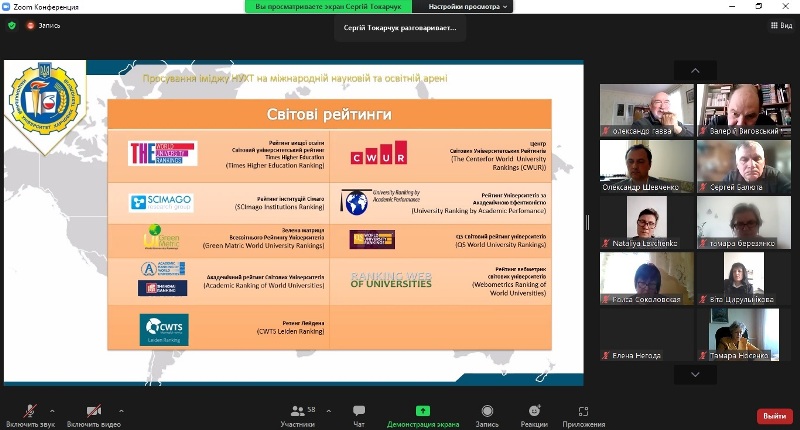 Проректор з наукової роботи, доцент Сергій Токарчук доповів з питання «Інтернаціоналізація освітньо-наукової діяльності університету: стан та перспективи розвитку». Він проаналізував усі аспекти міжнародної діяльності університету, навів дані, щодо виконання спільних міжнародних наукових досліджень, участі у проєктах програми Еразмус+, ініціативі «Єднання», кількості лекцій, прочитаних нашим здобувачам освіти зарубіжними фахівцями, закордонних стажувань наших викладачів і здобувачів освіти, позицій університету у міжнародних рейтингах тощо. Також проректор повідомив, що кількарічна кропітка праця зі включення наукового журналу університету «Ukrainian Food Journa» до наукометричної бази Scopus успішно завершена й нагадав, що публікації у ньому безкоштовні.
