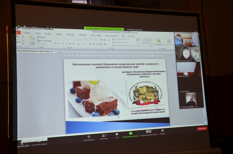 Аспірантка кафедри технології ресторанної і аюрведичної продукції Владлена Михайленко (науковий керівник – д.т.н., професорка Олександра Нєміріч) представила доповідь «Удосконалення технології борошняних кондитерських виробів спеціального призначення на основі борошна чуфи».