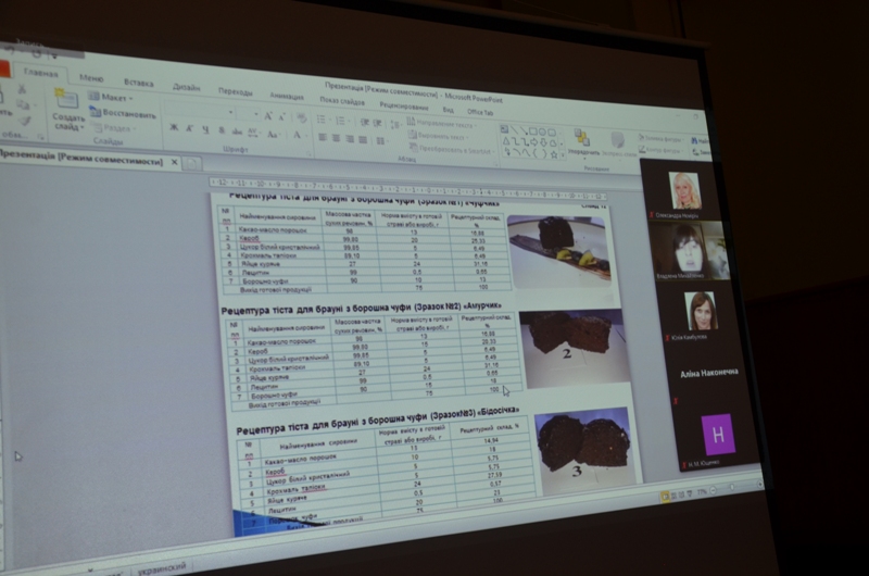 Вона представила наукові доробки щодо впливу борошна з чуфи як малопоширеної аглютенової сировини на властивості тіста і якісні характеристики виробів з нього – брауні спеціального призначення.