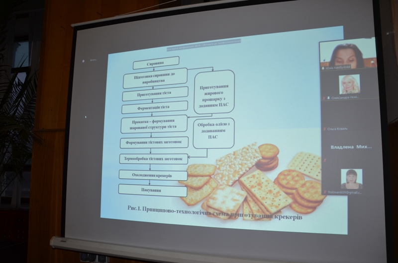 Доповідачка наголосила, що у сьогоденні споживачі віддають перевагу харчовим продуктам, які мають корисні властивості та збагачені фізіологічно-функціональними інгредієнтами Це зумовило вибір напряму дослідження з теоретичного обґрунтування вибору сировини і розроблення технології борошняних кондитерських виробів – крекерів із підвищеною харчовою цінністю та подовженого терміну зберігання.