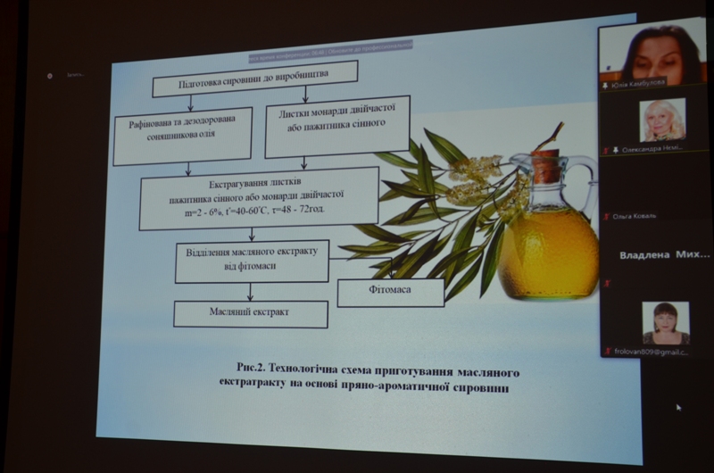 Із доповіддю «Використання потенціалу монарди двійчастої і пажитника сінного в технології крекеру подовженого терміну зберігання» виступила д.т.н., професорка кафедри технології хлібопекарських і кондитерських виробів Юлія Камбулова.