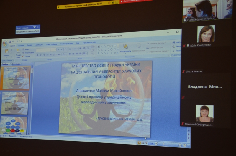 Доповідь «Трави і прянощі в традиційному аюрведичному харчуванні» представив аспірант кафедри технології ресторанної і аюрведичної продукції Максим Авраменко (науковий керівник – д.т.н., професорка Олександра Нєміріч).