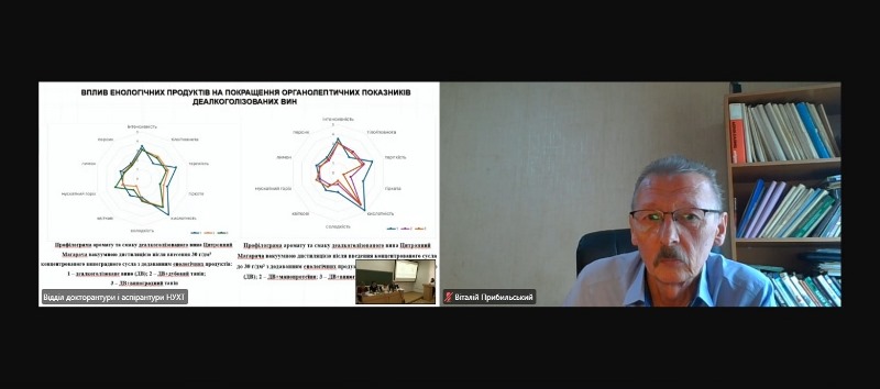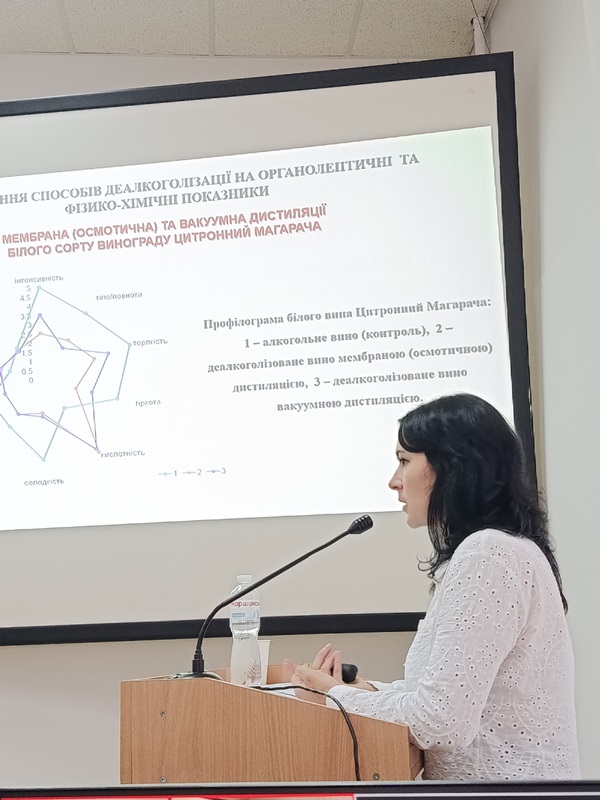 Усі присутні відзначили новизну й актуальність дослідження, його соціальну та практичну значущість, вирішення дисертанткою низки важливих завдань, серед яких – аналіз світових зразків безалкогольних вин, дослідження особливостей ароматичних сортів винограду, оптимізація процесів екстрагування терпенових спиртів, обґрунтування способів деалкоголізації та стабілізації напоїв, а також удосконалення нормативної бази й апробація запропонованої технології в умовах реального виробництва. Крім того, члени спецради та присутні на захисті науковці й виробничники високо оцінили органолептичні властивості виготовлених аспіранткою безалкогольних вин, які мали можливість продегустувати.