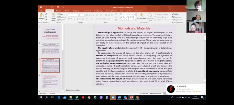 Із цікавою доповіддю «Influence of Digital Technologies on the Labor Market of HR Specialists» (Вплив діджитал-технологій на ринок праці спеціалістів із персоналу) та презентацією англійською мовою виступила Ліана Мазник.