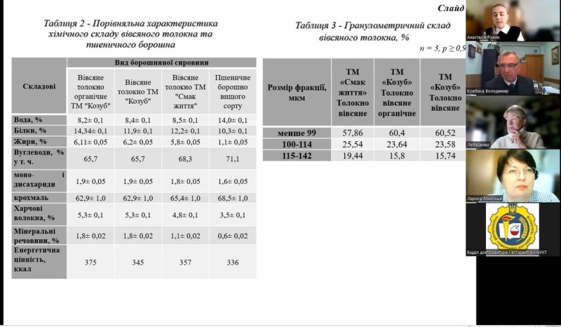 Анастасія Різник представила результати наукових досліджень із обґрунтування та удосконалення технології безглютенового хліба з вівсяного толокна з використанням структуроутворювачів. У дисертаційній роботі здобувачкою доведена доцільність спільного використання глюкано-дельта-лактону як структуроутворювача та молочного білку казеїну у технології хліба з вівсяного толокна.