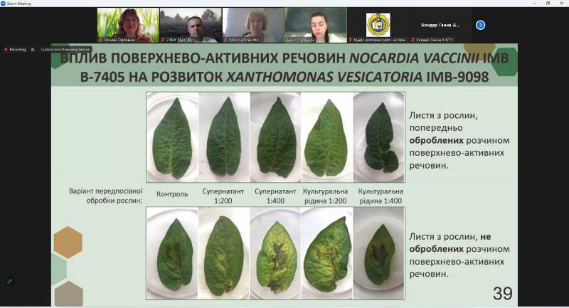 Дисертаційна робота Дар’ї П’ятецької присвячена розробленню інтегрованої технології синтезу фітогормонів і поверхнево-активних речовин Nocardia vaccinii ІМВ В-7405, Acinetobacter calcoaceticus ІМВ В-7241 і Rhodococcus erythropolis ІМВ Ас-5017 для застосування у рослинництві з метою стимуляції росту рослин і захисту їх від фітопатогенів. Здобувачкою були представлені результати інтенсифікації синтезу фітогормонів продуцентами поверхнево-активних речовин шляхом внесення попередника біосинтезу (триптофану), проаналізовано вплив цього попередника на рівень синтезу та біологічні властивості поверхнево-активних речовин, а також досліджено вплив одержаних метаболітів на ріст і врожайність різних культур рослин. Крім того, досліджено можливості використання препаратів поверхнево-активних речовин для захисту рослин від шкідливого впливу фітопатогенних бактерій.