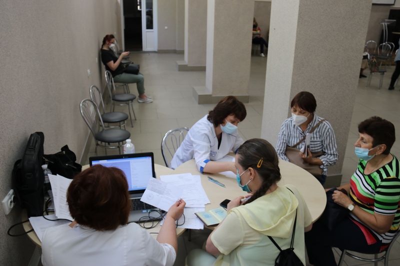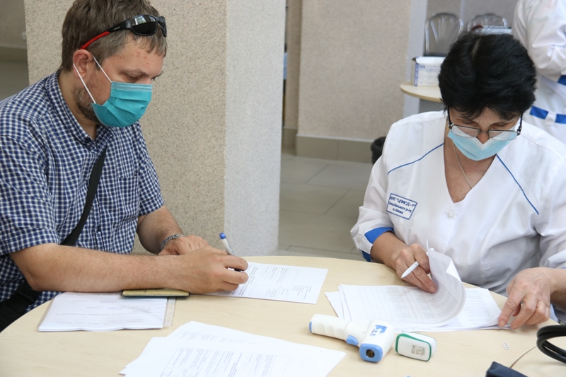 Перш ніж робити щеплення, працівники мобільної бригади проводять первинний медичний огляд – міряють температуру, пульс, тиск, розпитують про самопочуття, наявність хронічних хвороб, алергій тощо. Крім того, бажаючі щепитися заповнюють бланк інформованої згоди та оцінки стану здоров’я на проведення щеплення, а дані тих, хто не має декларації зі сімейним лікарем медичні працівники вносять до електронної бази.