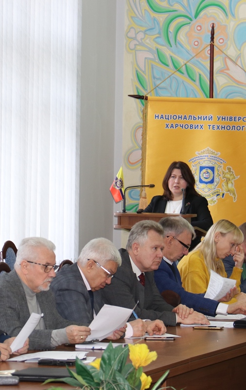 На початку ректор Олександр Шевченко вручив нагрудний знак «Подяка ректора» деканові факультету автоматизації і комп’ютерних систем Андрію Форсюку та Почесну грамоту НУХТ завідувачці кафедри технології молока і молочних продуктів Галині Поліщук. Також привітали колег, що відсвяткували дні народження між засіданнями.