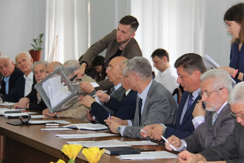 Спочатку розглянули кадрові питання – клопотання про присвоєння вченого звання професора кафедри маркетингу Наталії Соломянюк і доцента кафедри економіки праці та менеджменту Оксані Осадчук. Кандидатів представила вчений секретар Наталія Ткачук. До складу лічильної комісії обрали в.о. завідувача кафедри іноземних мов професійного спрямування Олену Галинську, голову студентського самоврядування університету Олександра Висоцького і голову студентської ради факультету біотехнології та екологічного контролю Ірину Ковшар.