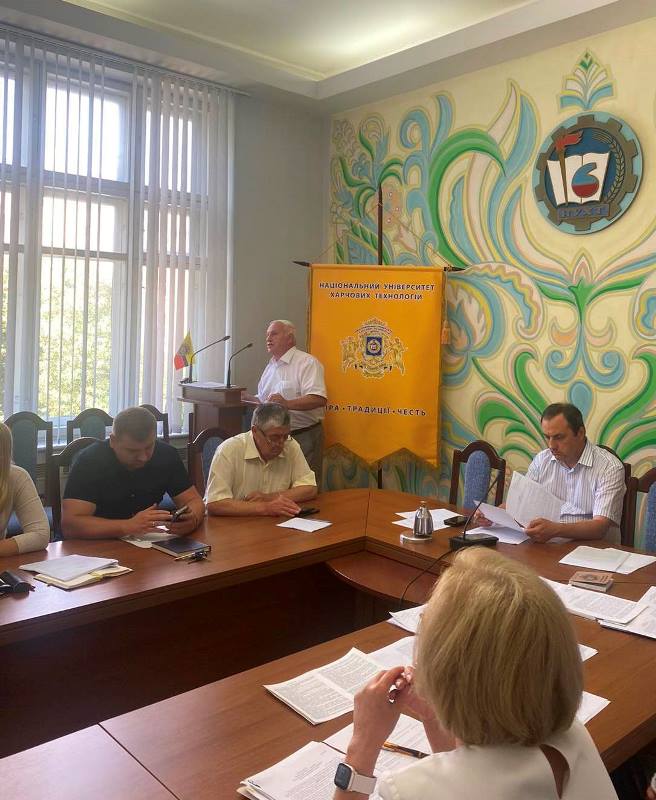 Першими розглянули кадрові питання – присвоєння вчених звань викладачам Інституту післядипломної освіти НУХТ. До вченої ради надійшли клопотання про присвоєння вченого звання професора кафедри переробки сільськогосподарської продукції Валентину Кочмарському; вченого звання доцента кафедри переробки сільськогосподарської продукції Володимиру Печку; доцентів кафедри економіки, обліку та фінансів Олександру Балдинюку і Володимиру Кучеренку.