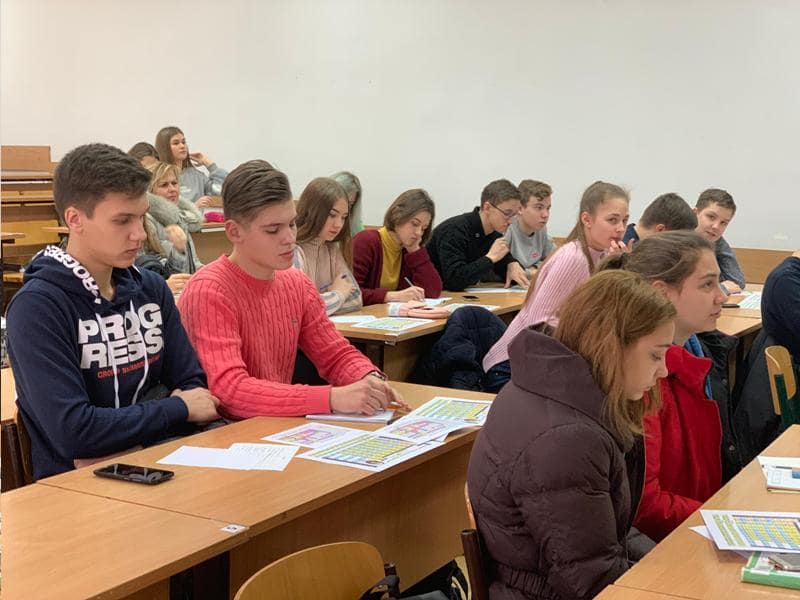Далі лекторій розпочав роботу. Разом із доцентом Вірою Іщенко школярі з’ясовували будову атома та всі наукові аспекти, що пов’язані з цим питанням. Дослідили, що приховує Періодична система елементів та як правильно нею користуватись. Традиційно перевірку одержаних знань здійснювали за допомогою розв’язання тесту, сформованого із завдань ЗНО з хімії минулих років.